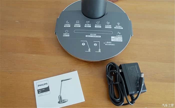取出来以后全套配件很简单,包括轩坦护眼台灯、台灯说明书以及电源适配器三部分。