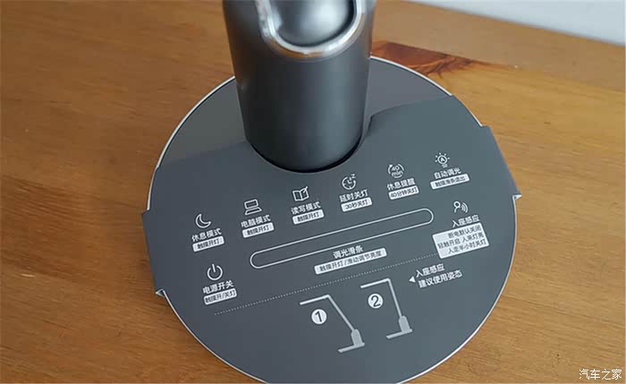 轩坦护眼台灯底座上有简易的使用说明图示,方便用户快速熟悉它的主打功能。