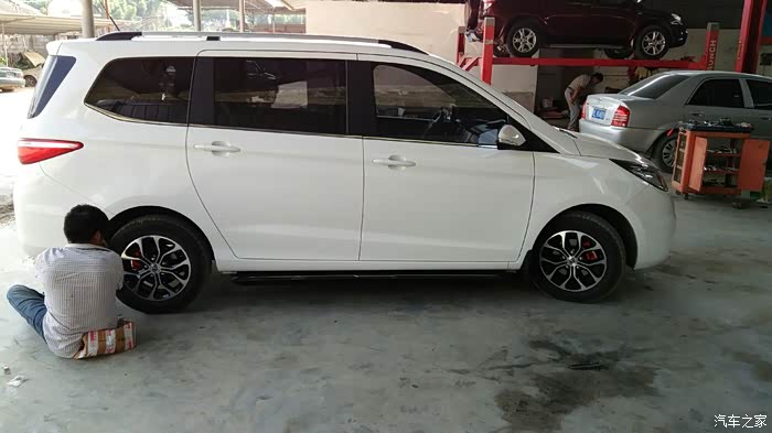 师傅多么的辛苦!!!下面请欣赏成品,安装过后的成品,踏板不够长,不过无所谓,要的就是不够长,留点位置顶千斤顶。。。。。