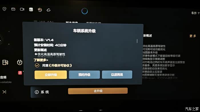我就是用的这个办法,当天下午就收到安装包推送了,前天我完成了升级,这两天开了一百多公里,给大家来分享下升级注意事项和使用体验,给还未升级的兄弟们一些参考。