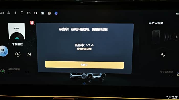 升级完成,建议大家熄火等十分钟左右,再启动车辆,确保所有升级内容都生效。我升级完第一次启动,感觉车机反应变快了,界面切换也更流畅。
