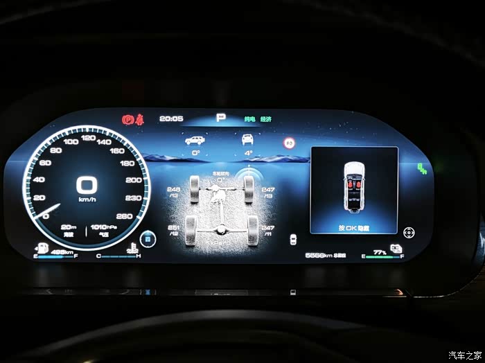四、“越野模式” 可以直接在前方仪表盘上显示了,实现了仪表、中控屏、HUD抬头显示三屏联动,我现在主要用它看方向盘有没有回正,哈哈,非常方便。