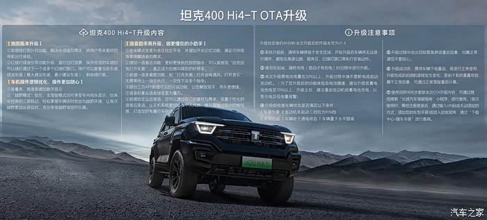 新能源有一点好,那就是支持OTA升级,可以常用常新,坦克400Hi4-T支持终身免费OTA的