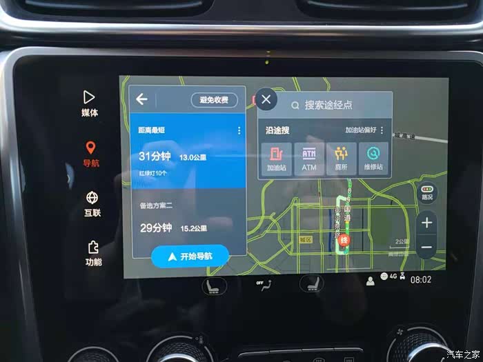 在途径里我们可以插入路途中要去的地方,例如加油站等,在一个陌生的城市里,这个功能很实用。点击开始导航