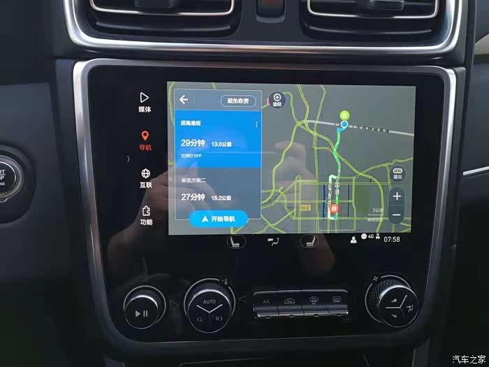 领克的导航系统因为是联网的,所以它能显示实时路况(也就是说它可以显示每条线路的拥堵情况,上下班真的很好用,可以避免堵车)。