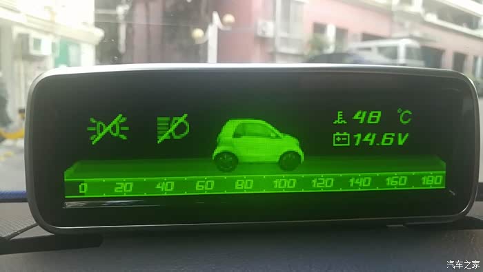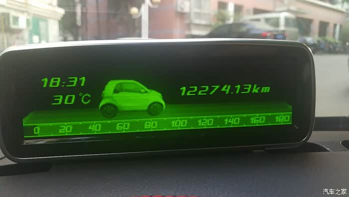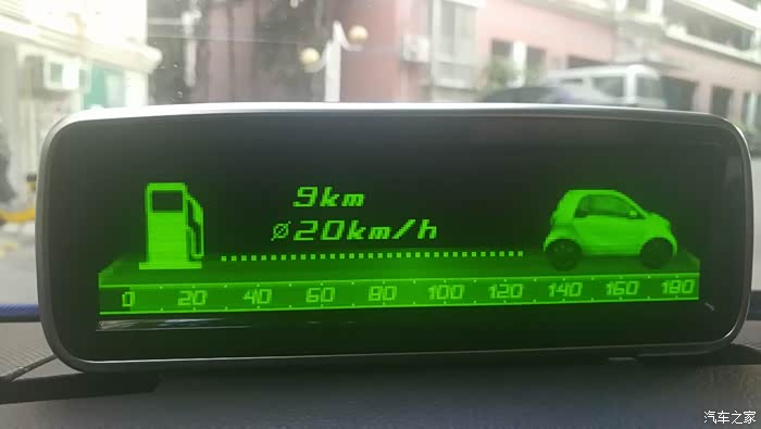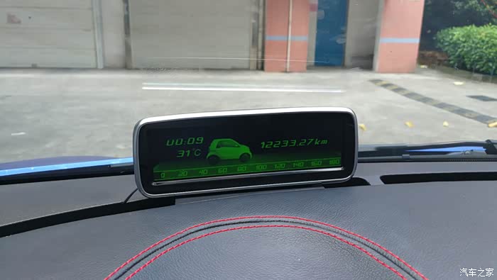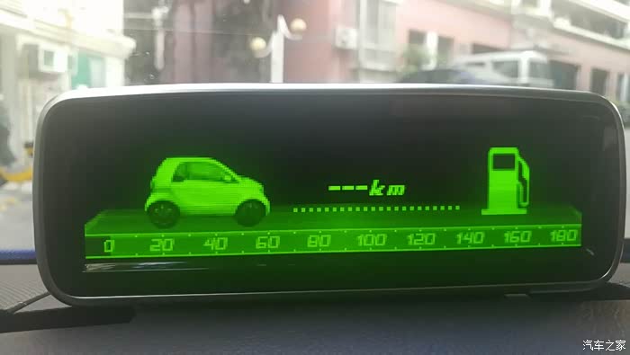 这个界面可以切换成剩余油量可继续行进的公里数,是一个很不错的功能,其实现在很多A级车都有这个功能了,SMART的电脑也有,但是为什么不把这个功能放在原车的仪表台,就要问德国人了,现在只能靠这个抬头显示器来实现这个功能显示。
