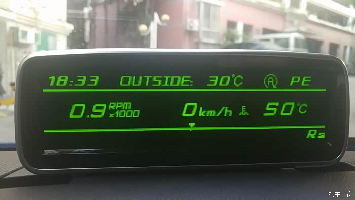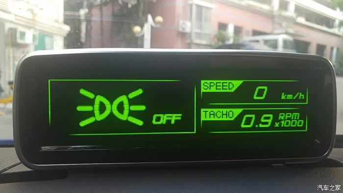 功能确实比想象中的多,这个抬头显示器的走线,是从OBD的背线插头取的数据,原来只认为是简单的读取OBD的内容转换到显示器,实际还是有些意想不到的功能,最炫的就是回家欢迎功能。基本上,大致的能够显示的界面都全部拍照完毕,功能很强大,显示的信息量很大,美中不足就是没有语言切换,没有中文显示。当然了,这个本来就不是对中国销售的,从包装盒上贴签的信息,这个产品是在中国生产的,订单1000,运输1000,刚生产完就直接出口了,没有流入中国市场,这几台还是通过订样板的方式弄进来的,很不容易。能读取到的数据不少,让我感到遗憾的就是没有关于胎压监测的数据采集,我的车是另外安装了SMART原厂的胎压感应,这个附加的显示器没有关于胎压监测的数据显示,让我有小小的失望,但也能肯定这是一款很不错的产品,没有在中国市场销售,实在可惜。