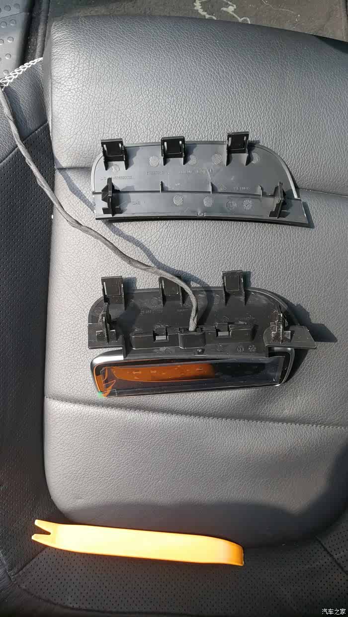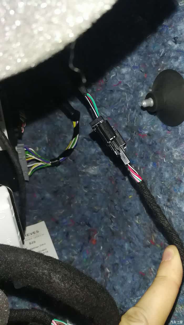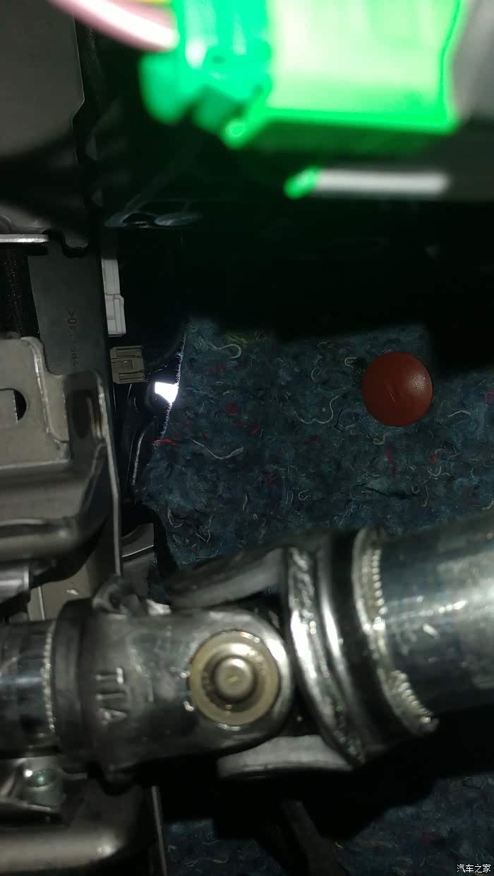 这个是在车内往上排的,有一层隔音面,要拉开一些,可以看到光点就是上面盖子撬开后才能看得到的,线就从那个光点的位置穿下来。