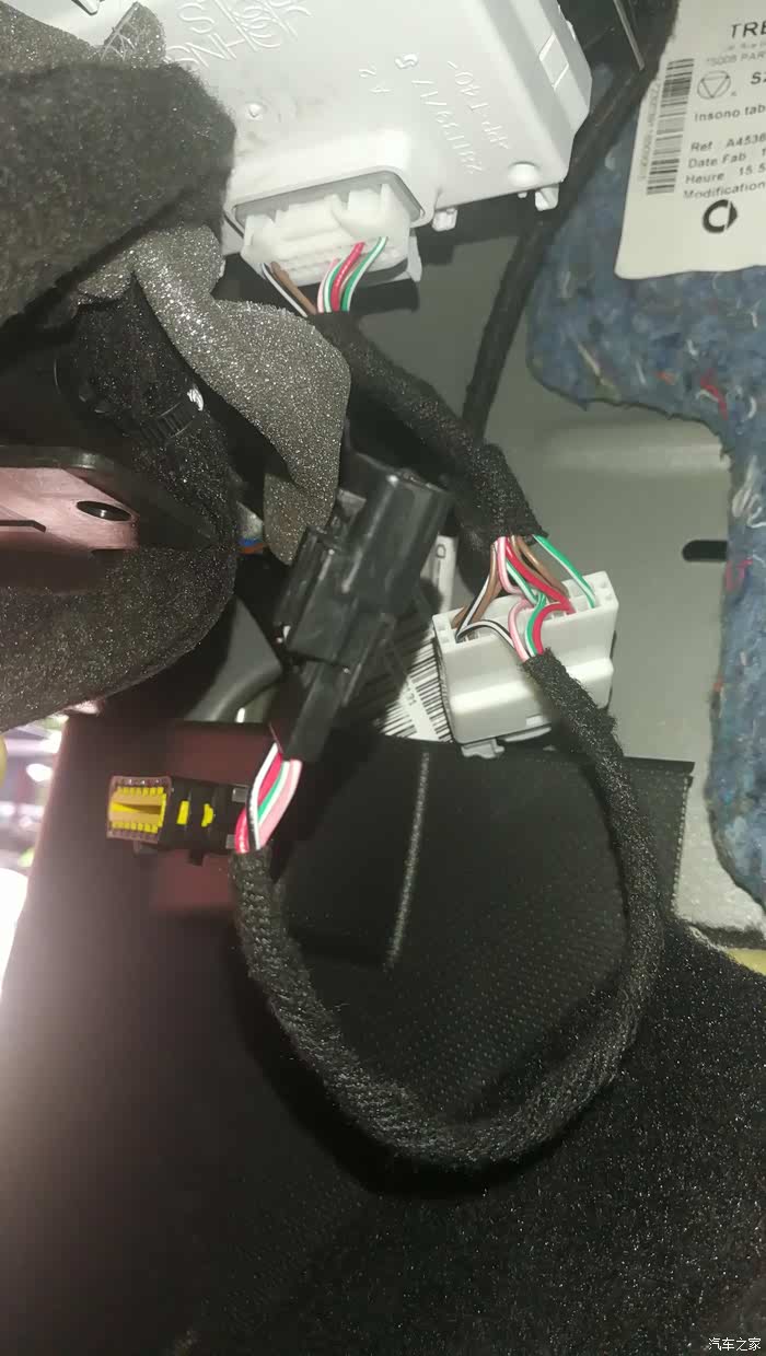 将原车白色的电脑盒的插线拔出来,接到转换线上,这个作业很简单,位置有点小隐蔽,在OBD接口的后上方。