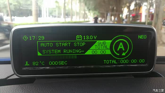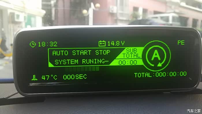 这个界面显示的是自动启停的状态,电池的电压,左下角显示的是水温,右上角NE0是当前档位,行进的路上会变成NE1,NE2,NE3这样,一直到NE6,6档