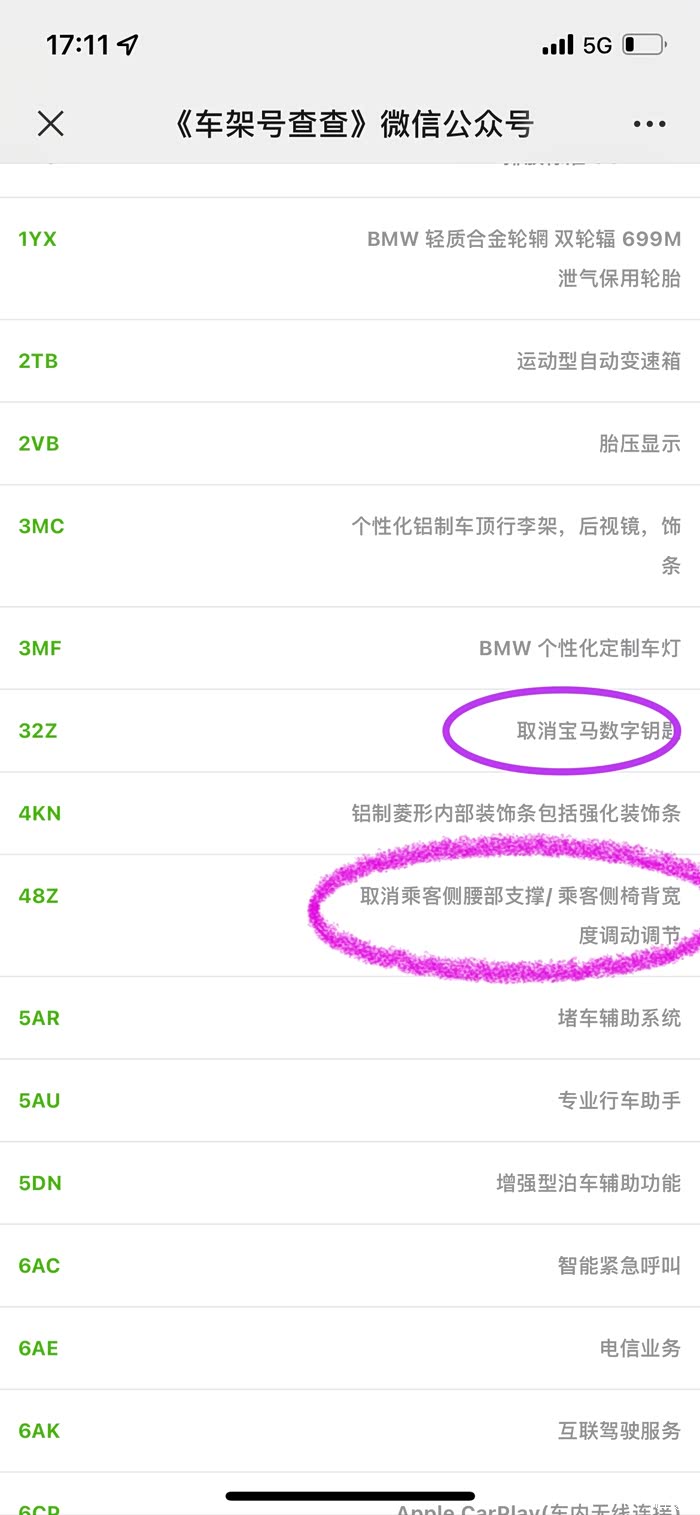 请问现在的宝马2022款x3 取消了数字钥匙和侧腰部调节和支撑 通过车架号查询看到下面这个信息