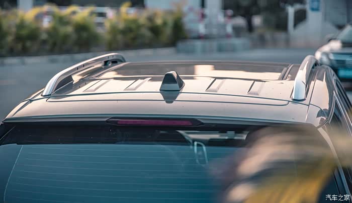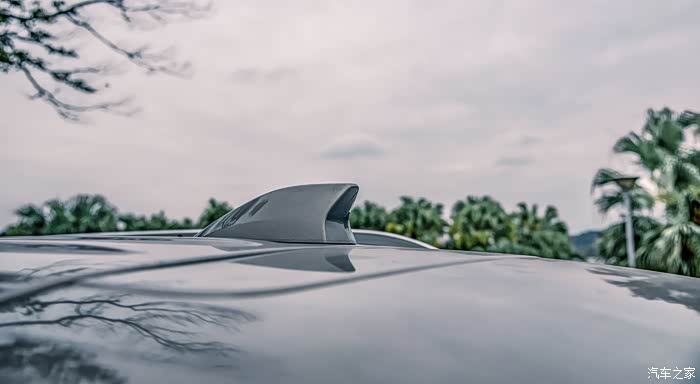 鱼鳍型天线也是经典的美观,车顶还采用了凹凸加强筋的设计造型,一方面可以减少风阻,又可以增加车顶的强度。