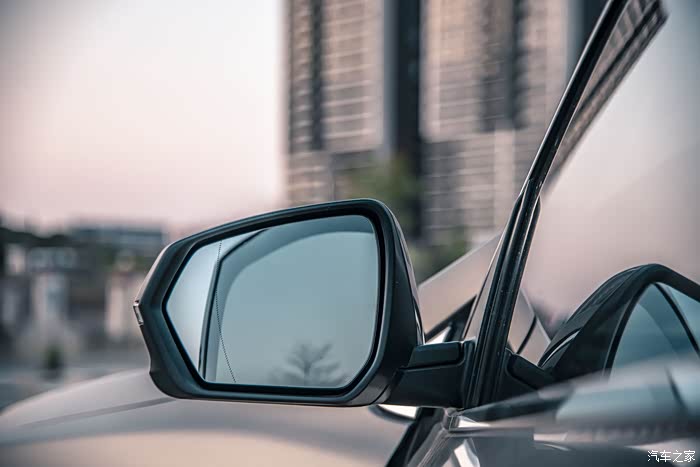 同色宽大的后视镜,视野非常开阔,并支持电动自动折叠,非常实用,大爱。