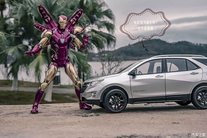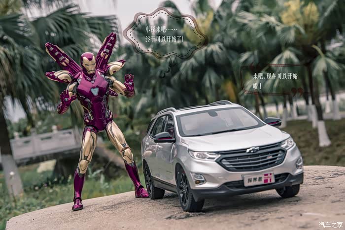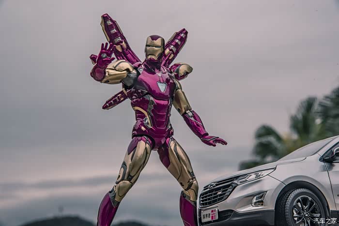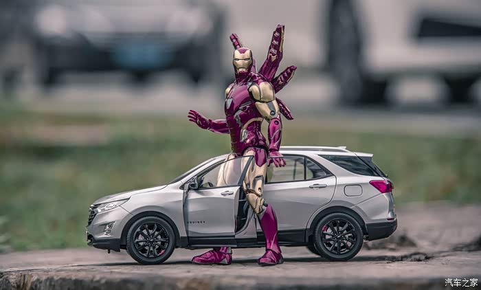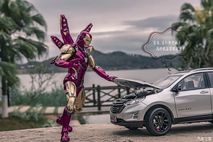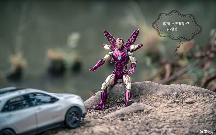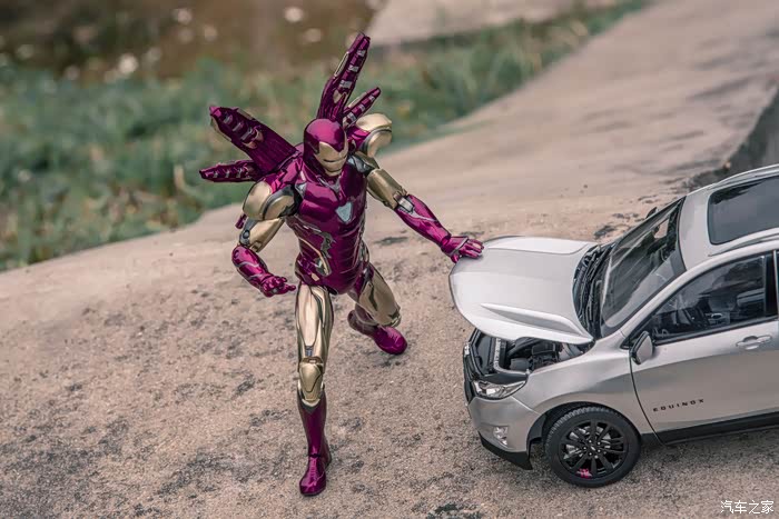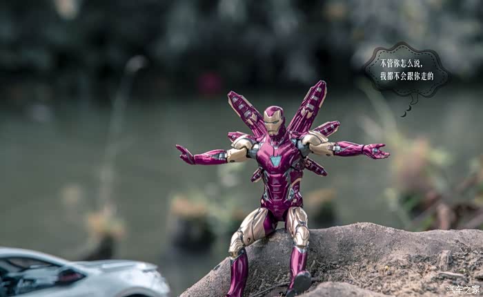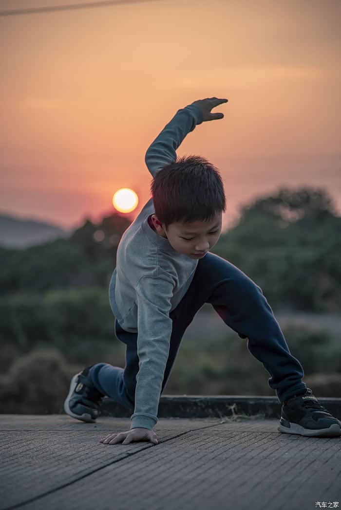 这就是我家的小淘淘,他喜欢汽车小模型,喜欢钢铁侠,趁着日落山间、晚霞照洒大地的瞬间,不经意就做出了铜铁侠的招牌动作