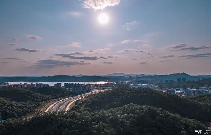 步行回车场的期间,发现远处的夕阳风景美不胜收,赶忙按下快门,才有了这张倩影。