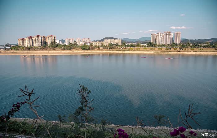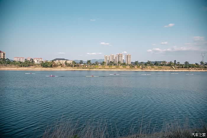 一只只在碧绿江水穿行的赛艇为江面增添了动感的气息,让人精神爽朗