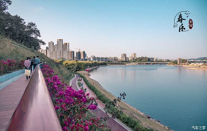 踏着轻盈的脚步,眺望江中的小艇,饱览两岸的春花,迎着风……
