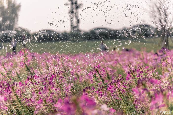 透过晶莹的水珠,与周边的游人勾勒出这副春之花卷