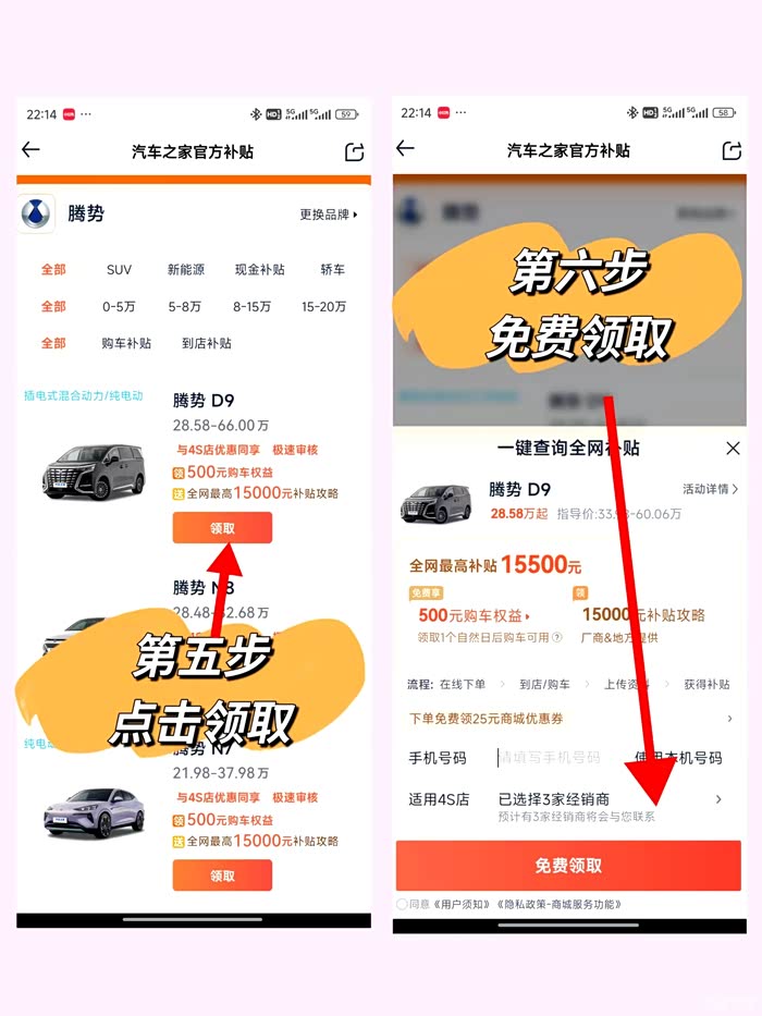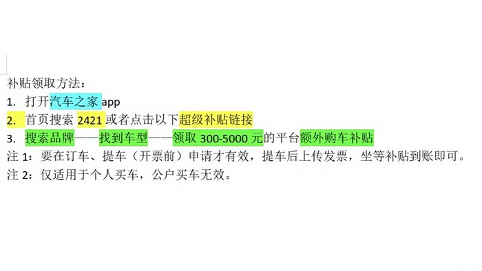 汽车之家买车补贴:500元权益补贴(必须在购车、定车前领取,最少提前一天领取,已经下定的再领取无效哦!毕竟是白捡,这都是羊毛福利,买车能省一点是一点)。