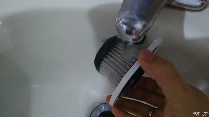 按照说明书上提示,滤芯可以进行冲洗,我在室外先把滤芯进行了一下简单的清理,就是敲一敲,大块的毛球和灰尘块都会掉落,防止水冲的时候把它们冲到更深的地方,影响下次使用。