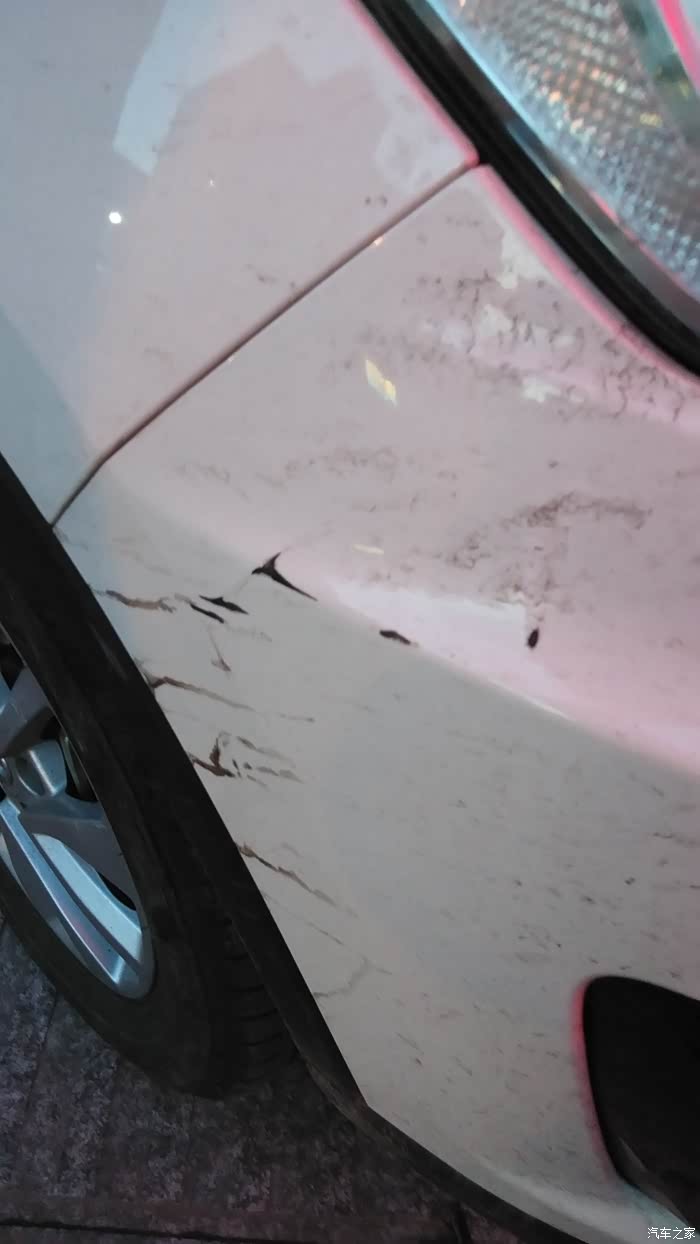 前几天撞了,赔了人家钱,自己的车保险杠露出来几个指甲盖大小的几个点,怎么处理呢,补漆笔完了不光滑很难看,要喷漆的话我觉得不值得...行车灯那里也剐蹭了!撞的都凹进去了一块,一会儿又自己弹出来了,咱这车质量还不错的!