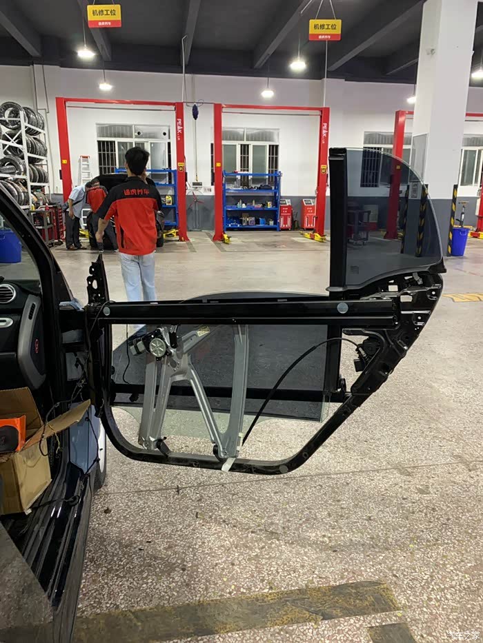 首先是更换双门喇叭。也是考虑了很久才决定换喇叭的,因为原来二手车的喇叭很破,实在忍不住,后来看到某平台有560元包安装的jbl双门喇叭服务,果断下单~看到门被拆开的时候,确是心疼,哈哈