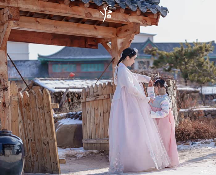 所以第三天,我们一大早就起来去民俗园,让我家的大小公主体验一次朝鲜姑娘的乐趣。