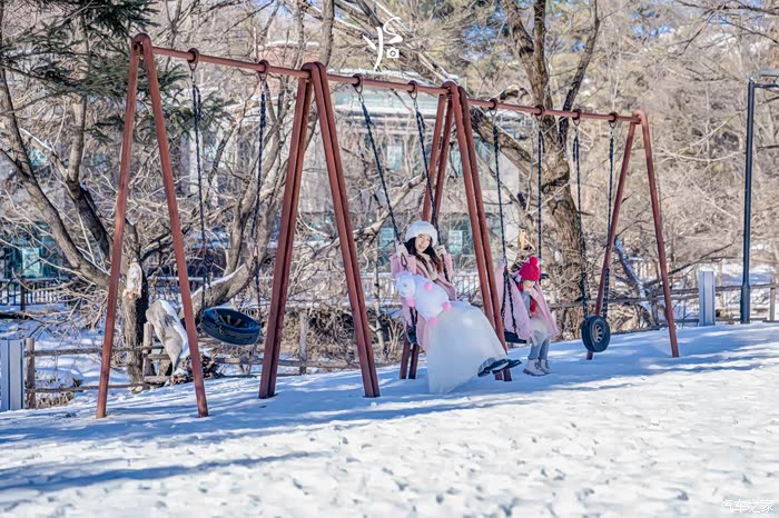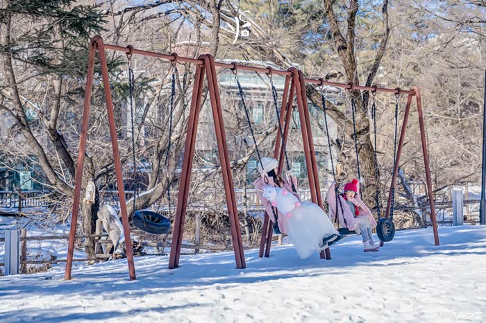 和上百号雪人拍完照后,我们就在酒店里发现了酷似挪威森林的河流树木,以及还有小朋友玩耍的秋千。