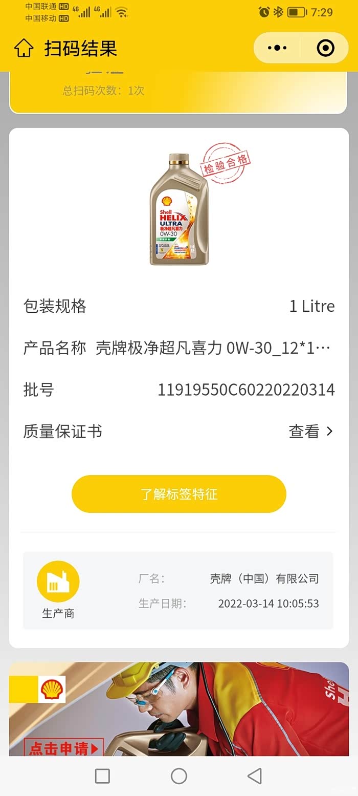 天猫618买的壳牌极净超凡喜力0w30,这个字体从小到大不一样啊 扫码正确