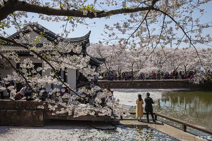 四月一日,我们一行数人驱车前往鼋头渚一睹樱花芳容。鼋头渚主要赏樱点有樱花谷,长春桥,赏樱阁等处。