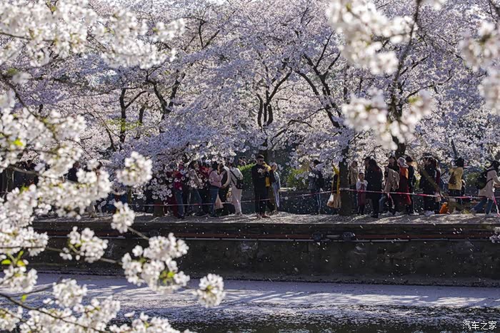 当天风和日丽,樱花已进入盛花期,满树满枝的花朵开得层层叠叠,在微风的吹佛下显得格外妩媚。最让人惊喜的是一阵阵的樱花雨。每当一阵轻风过后,摇曳的枝条上纷纷扬扬地飘落一阵“樱花雨”,此时必有游客们的惊呼声和叫好声!