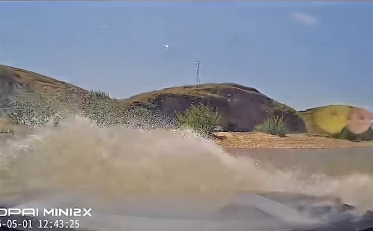 下水的瞬间,水花就到前挡风玻璃了。