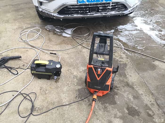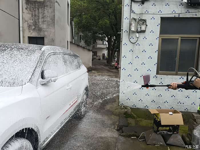 作为一个洗车机,好不好用还得实际测试一下。担心一个洗车机无法对比,我找到一个车友。他自费购买了洗车机。周末去他家现场测试一下。 他提车三年一直自己洗车,用了指南车洗到一半,他就不用了 说很不方便。主要就是枪柄短,容易溅水到身上,没有泡沫壶等 由于当天小雨,只能简单测试一下洗车过程。