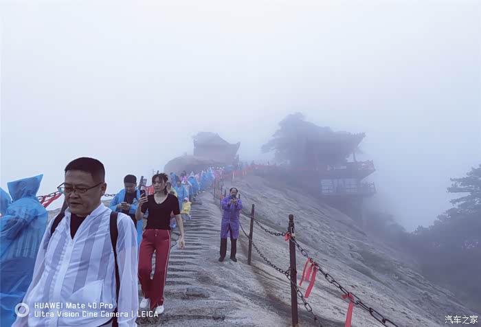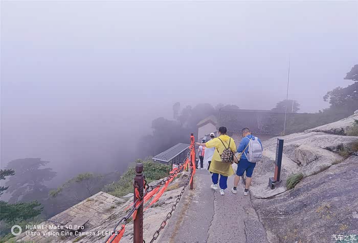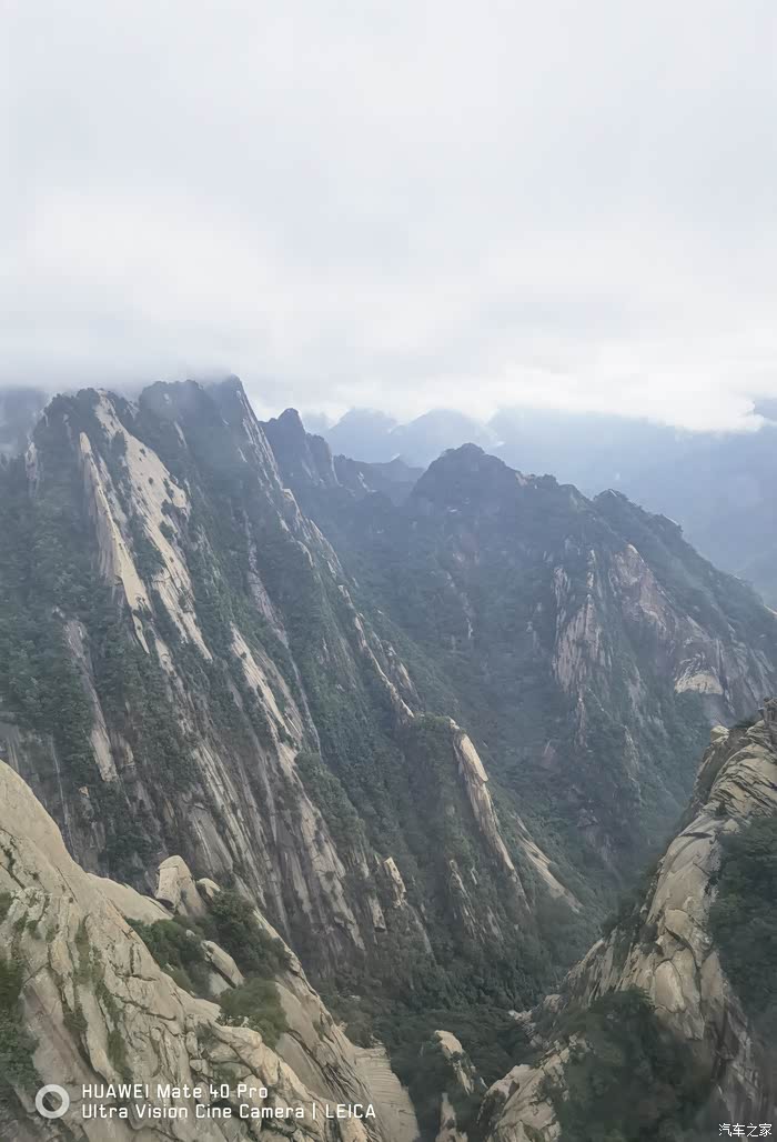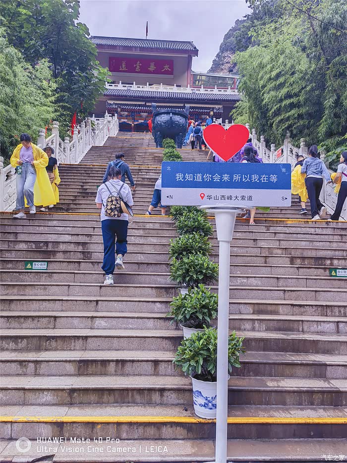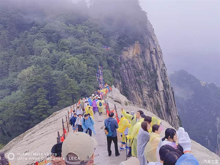 跟团第3天 ,华山 。 华山自古有天险之称 ,距离西安100多公里,华山隶属于秦岭山脉的分支 。原计划我们7::30出发,大约8点左右进山 (导游5点去排队,领门票); 结果早上下雨了 ,华山封山、暂不卖票 ; 我们等到10点多才出发,11点才开始登山。 虽然下雨后温度降低(当天26度),比40度高温登山强的多, 但也耽误了不少时间。 我们只登上了西峰顶就下山了 ; 就1个三口之家(孩子高考结束,成年了)从西峰上去、北峰下来的 ,算是走了一圈 ,剩下我们4家都没走那么远 ,毕竟老的老、小的小。