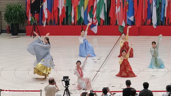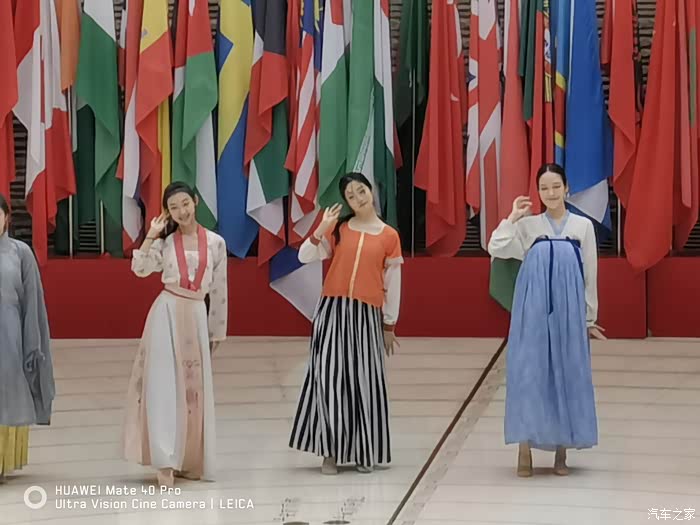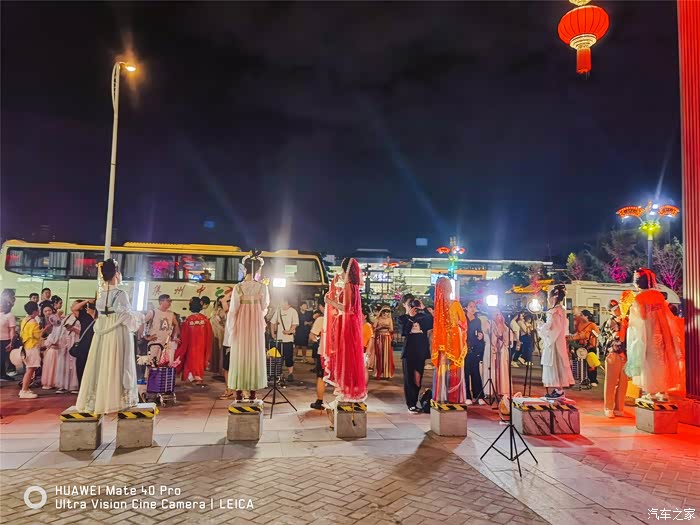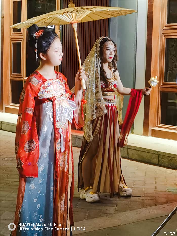 这是一个唐装,一个异域风情 ,前面是摄影师,应该是赶往下一个拍摄地点