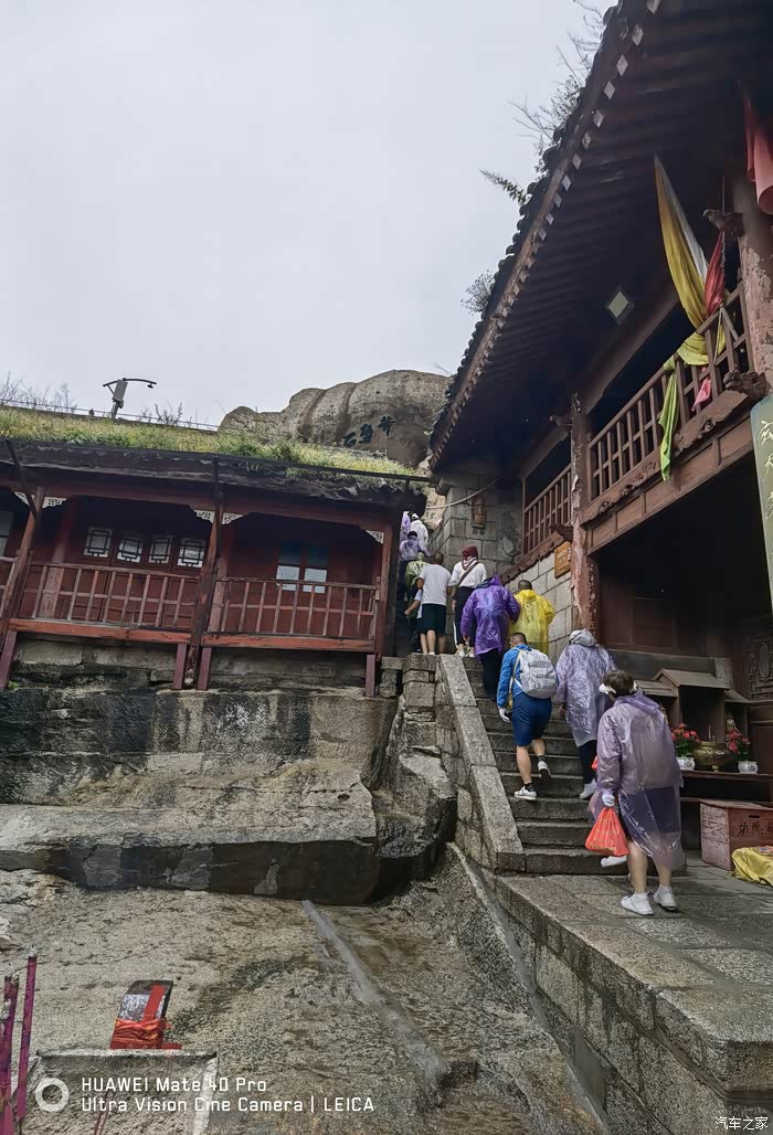 山下虽然晴了 ,但山顶还是雨雾蒙蒙的 ,犹如人间仙境 。(山顶有点冷,得穿雨衣;如果40度高温爬山,就不冷了