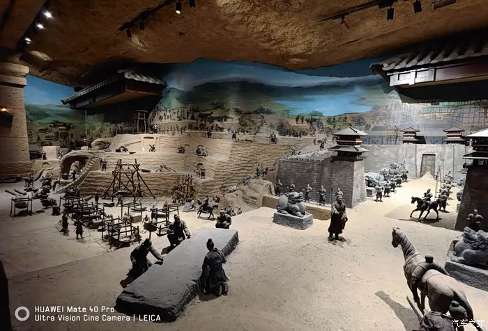 模拟始皇地下宫殿的模型。 秦始皇的陵墓就在兵马俑旁边的一个山坡上,以目前的技术无法无损发掘 。 下面有上百吨的水银,剧毒;始皇帝的棺木也是漂浮在水银上流动的 。