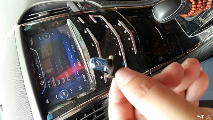 3,后排阅读灯,后排阅读灯需要用到内六角套筒工具,8分的,首先将把手拉下来,撬开两边的盖板把螺丝拧下来。其次晃动把手,把阅读灯总成逛松,把把手拿下来,然后按翘前排阅读灯的方法从上往下翘开阅读灯总成,这里要注意阅读灯总成的弹簧卡子就一个在下面,黄铜色的,上面是插销式别住的,千万别硬拽,需要用手或者螺丝刀顶一下那个黄铜色的弹簧卡子就能拿下来拆候阅读灯的图片找不到了,可能照了没保存下来。这里的灯泡型号和前排阅读灯一样,也是t10,垂直安放,不要超过3厘米。