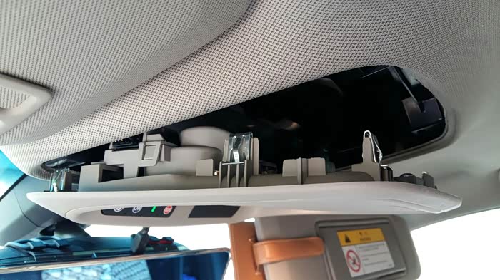 阅读灯拆下的效果图,一共6个弹簧卡子,装回去的时候记得对准卡口这里要注意的是安吉星的连接线比较短,完成开口较小,不要太用力拉了,从后面完全可以把灯泡卡子拿出来。