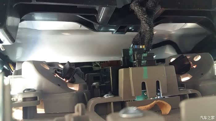 这里要注意的是安吉星的连接线比较短,完成开口较小,不要太用力拉了,从后面完全可以把灯泡卡子拿出来。