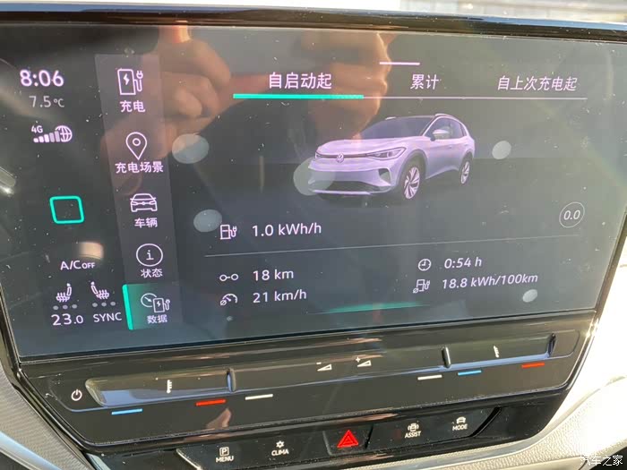 最终在到达目的地时,车机屏幕上显示的平均能耗为18.8kwh/100km,低于我的预期电耗水平。