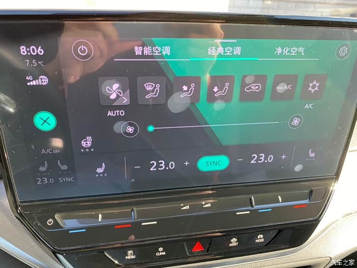 早晨从家里的地库出发,室外温度显示为6摄氏度,此时通过空调控制面板将温度设定在23摄氏度,没有开启方向盘加热和座椅加热,风量调到了最小,此时很快就可以感受到空调出风口的暖意袭来。