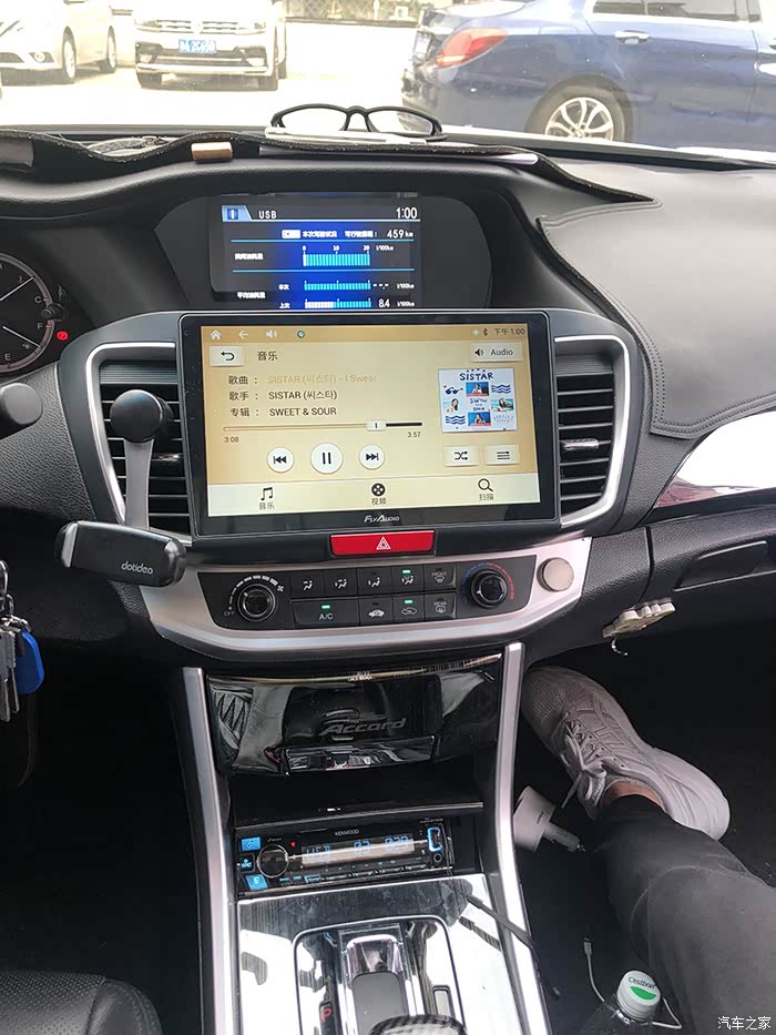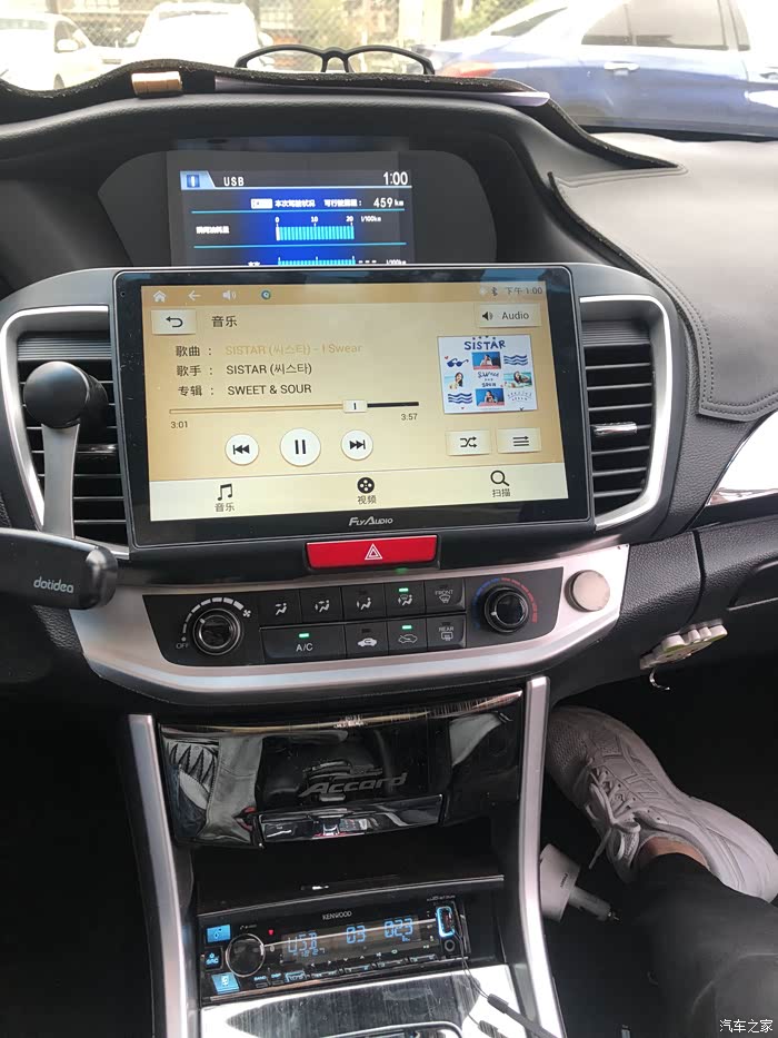 导航大屏机音质太差了,实在是听不进去,但是又想听歌;想来想去还是加个主机,在建伍和阿尔派中选,最后还是选了建伍;到手开机,我是先用家用试的,声音一出,那声音和原车好太多了,都是一样的喇叭,试完装车,音质无敌,换上以后立竿见影!把机器藏在大屏机后面,我车还是原喇叭,声音清晰了很多,很多声音细节都出来了,后期准备再把喇叭换掉,效果会更好,上安装效果图