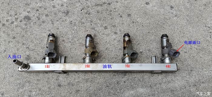 从入油口一侧往右数,依次为1、2、3、4缸。(2缸的喷油嘴以前曾换过)