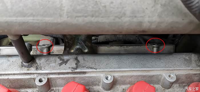 最后将油轨连同喷油嘴一起装回原位,建议先插上4个喷油嘴的电源,再拧上那两颗螺栓,最后插上油管,听到咔嗒一声,说明油管已安装到位,最后再将那根皮管复位就大功告成了!