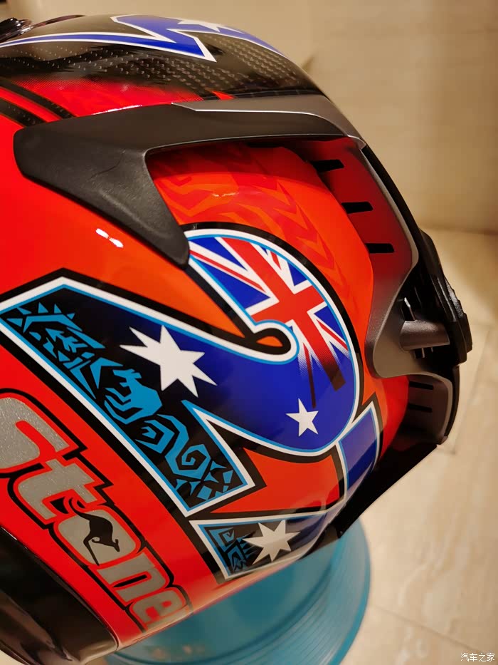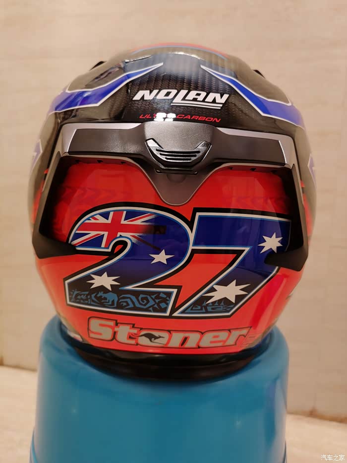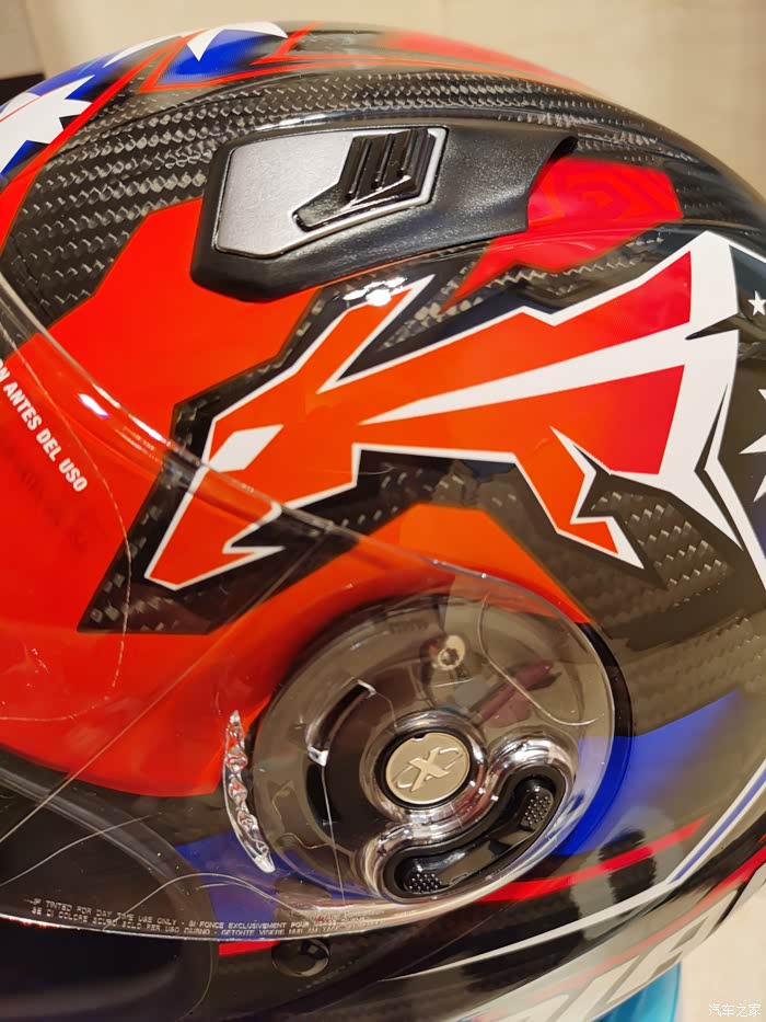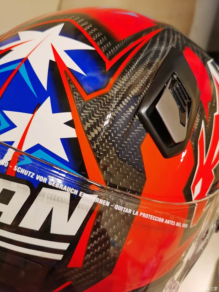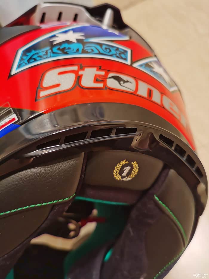 ),最终选了个斯通纳版画的803,三千多大洋,性价比来说很高了。nolan的盔以前买过,我56.5-57的头围L码正合适(shoei和ogk的是M码,一般是欧洲盔要选大一码)。下面说说试戴的感受,戴上803最直接的感受就是紧,或者说是包裹感非常强,但是不夹头不夹脸,非常舒服,而且看内衬材质透气性应该不错,个人感觉佩戴舒适度是胜过shoei Z7的,这里有个问题就是戴眼镜比较麻烦,得调整很多次,当然调整好之后眼镜是一点不会松动,不像空气刀5会滑出来经常得扶一下。另外803的鼻封很大,基本能覆盖整个鼻子,对防止眼镜起雾应该有些作用。至于通风性和风噪,还没戴着骑过车,想来应该不会差,毕竟是赛盔。最后说一下重量,L码的803是1380克,M码的Z7是1500克,M码的空气刀5是1430克。下面附上照片大家看看吧,争取明年买个RX7X再来作对比