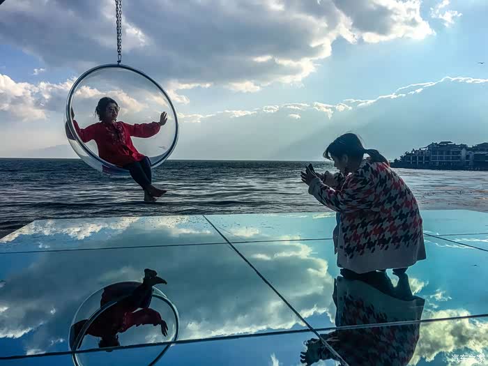 双廊海边有很多这种玻璃球形的吊椅,是现在大理最流行的拍照道具。