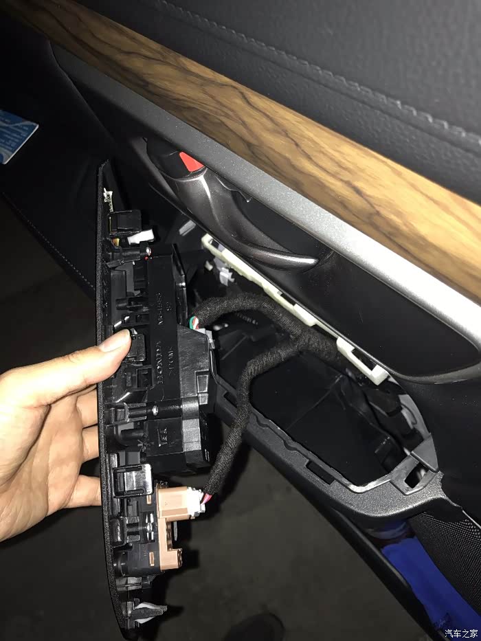 1.拆左边扶手控制面板,拆面板还是要小心。不要把卡扣搞断。