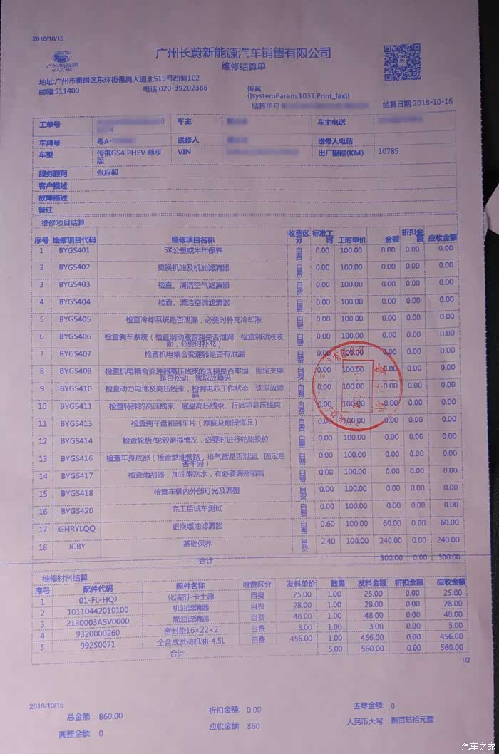 距离上次保养56天!里程10785,今天09点直接杀到第一店