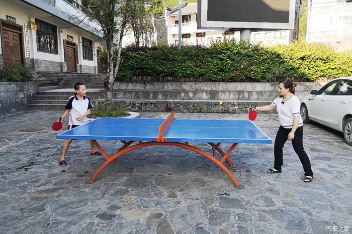 茶山小镇有乒乓球台可以锻炼身体,先运动一下等一会好饱餐晚饭。